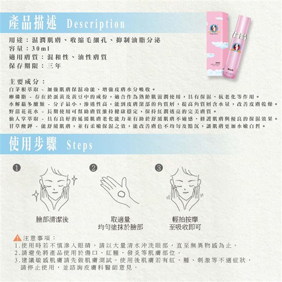 適用膚質:混和性、油性膚質。
